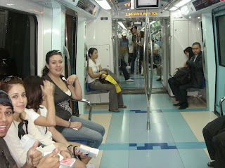 When 5:00 came, we were finally allowed to go to Masdar and see the facilities. I don't remember the guy's name who was guiding us around, but he was really cool. He talked to us a bit about some of the projects they were working on with desalination of the water and with the solar panels they are using and the issues they are running into. Then he took us over to see the institute they have on the site there. They let us ride in these little pods they plan to use all over the city when it's done. They are called Personal Rapid Transports (PRTs) and they drive themselves and are controlled by magnets underground. They sit up to 4 people, two benches facing each other. They aren't on tracks or anything and they are pretty quick. You just get in and push the button of a predetermined desintation, it closes and wisks you away to wherever you want to go. The only destination right now