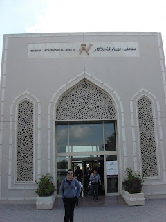 So staying out super late last night was a terrible idea. By the time i laid down and went to sleep, i barely got any sleep for today. We had to start early early because the people from Sharjah sent us a bus to pick us up at 8:00 in the morning. I have been using my ipod as an alarm and it's not the most reliable thing to use since every time i plug it in to charge it the time resets. So i woke up literally about 15 minutes before we had to board the bus, and that was only due to commotion in the hallways outside my room. Needless to say, i had no time to shower or anything. I wreaked of smoke from the night before in the soccer bar and looked like a pile of garbage all day long. Mariella told me i was the smelly kid, which i slightly resented but ultimately didn't really care about considering how tired i was the whole time. Sharjah is just a little ways north of the creek from Dubai. You can still see the Burj Khalifa from Sharjah. I couldn't tell you about the bus ride there though, because i was passed out the entire time. In a nutshell, this was my least favorite day. I don't know if it was subliminal from what Khalid told me the night before, but Sharjah lived up to all he expectations he set for me. Sharjah is much more conservative than Dubai, and is no where as rich as Dubai. Really, the only to Emirates that have much money or influence in the UAE are Abu Dhabi and Dubai. The others don't have the resources to attract the tourists and investors that Abu Dhabi and Dubai does. So to make a name for itself, Sharjah uses the little money it get from oil revenues to build museums and preserve the history of the region. It's a noble thing and i am not knocking them for it. In fact, Sharjah is known as a World Heritage Site, which is apparently a tough accolade to earn. It's just not as sparkly and exciting as the rest of the trip has been. The first place we visit is the Supreme Council for Family Affairs. This is the government agency that invited our group to come and tour Sharjah and set everything up. Our instructors were glad to accept the invitation because they didn't need to do anything. At the first meeting we went to, we sat in a room and watched a video on what the Supreme Council for Family Affairs does for the people of Sharjah. It's a noble cause, promoting development and education for children and families, especially those with special needs and what not. They also focus on advancement of women. I can't speak for all Muslim countries, but the women of the UAE are encouraged to develop themselves through education and careers. If they want to work, there are jobs for them. It's a far cry from the perception many in the west have that women are oppressed in Muslim countries. That being said, they do follow the cultural traditional dress more strictly than in Dubai. All the women we meet (the staff of the Council hosting our tour today is all women) are wearing black abias and head scarfs, many also have their faces covered. I know it's bad to say, but every time i see them, i can't help but think "ninja". They don't let us take pictures of them, and the older women who are married politely decline to even shake my hand, or any of the men in our group for that matter. It is a very conservative society, but they are very focused on community from what i can gather from the video. After the video, we do a little question and answer session and are treated to a light breakfast before we get back on the bus and head to the first museum.The first one we go to is the Sharjah Archaeological Museum. Our guide is a man dressed in a kandura (white robe) and head scarf, and he's very knowledgeable about the subject of