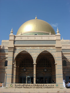 archeology. It was interesting to me that they approach the subject in such a scientific way. A lot of what he said seems to fall in line with a lot of evolutionists claim, which is surprising to me considering how conservatively Muslim the region of Sharjah is. They even record time differently, meaning they don't use the BC and AD notations for years. They have another way of doing it, but i couldn't tell you what it stand for and what the significance of it is. Still, the way he talks about archeology and how the region came to be the way it is based upon fossil records is impressive. Apparently Sharjah is a hot spot for the area in regards to archeology. Unlike Dubai, Sharjah has a variety of geographical landscapes. Dubai is nearly all flat desert, but Sharjah is the only Emirate with two coasts, one on the Arabian gulf and one touching the Indian Ocean. The side of Sharjah by the Indian Ocean is quite mountainous and is an area where archaeologists from around the world come to work. The tour is interesting enough and isn't too terribly long, maybe an hour or so.Our next stop is another museum, the Sharjah Museum of Islamic Civilization. This