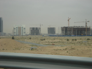 been here. We were told it hasn't rained here in over a year, but we saw a little today. When i say a little though, i mean a tiny touch of sprinkling. Nothing substantial. But still, it felt kind of neat, like it was an event or something. We had to meet at 8:15 for our first appointment, so i got up early to get ready and have some time to skype with Jenn. However, our internet was still down when i woke up, so i wasn't able to skype with Jenn at all. Luckily i had slept through the night though and wasn't tired, so it wasn't a problem getting up a little early. We met together in the morning by the pool and got 3 cabs to drive us back to Knowledge Village where Middlesex University is. There is a London based architectural firm there called HDR and we met with the small office of architects to discuss the growth of Dubai and the current status of the construction business.